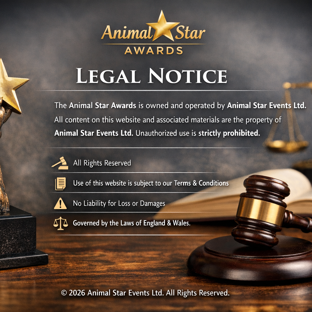 Animal Star Events Ltd shall not be held liable for any direct, indirect, incidental or consequential loss or damage arising from the use of this website, participation in the awards, attendance at events, or reliance upon any information provided.